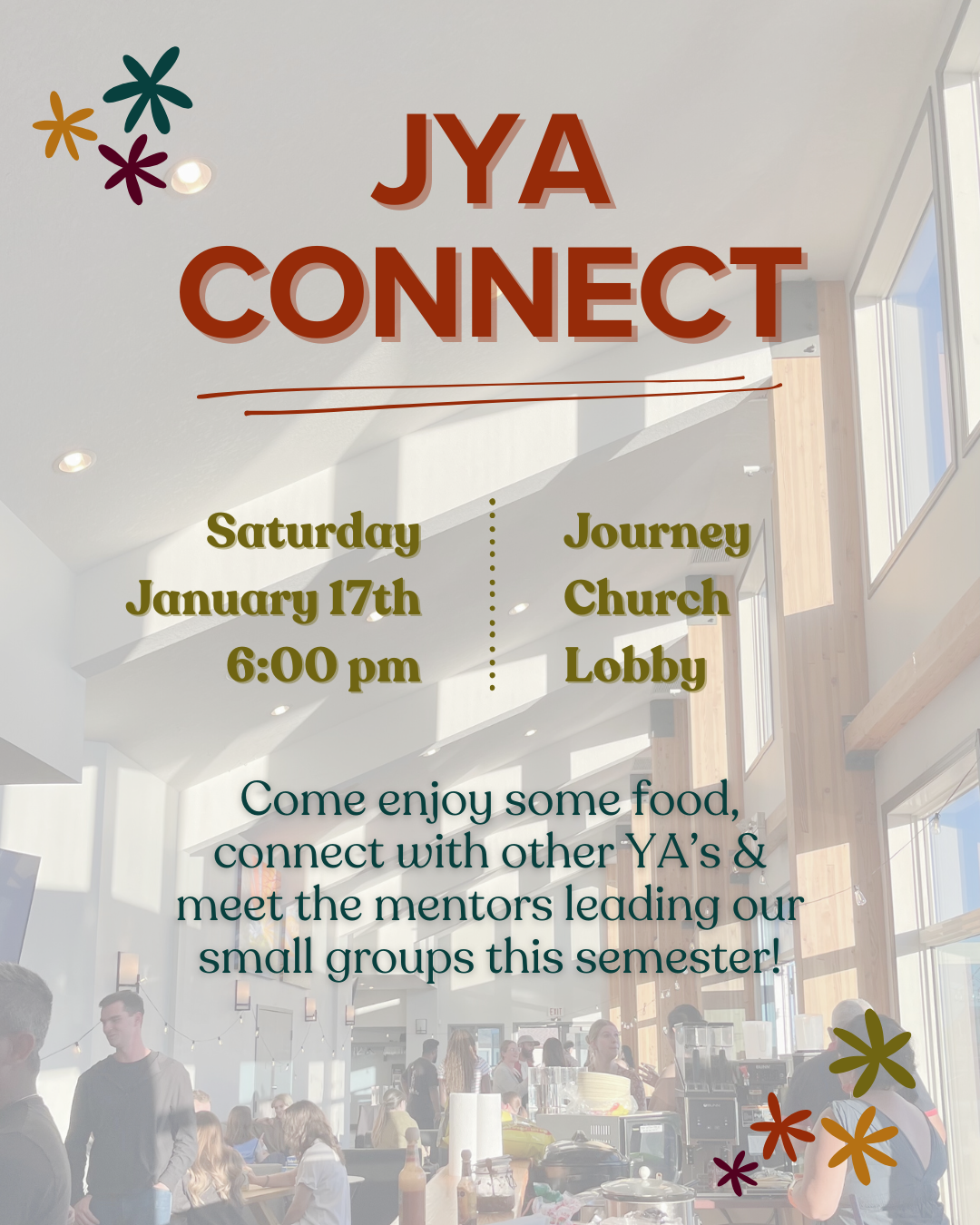 This is also the perfect event to invite a friend who’s curious about JYA or looking to get plugged into a small group.
